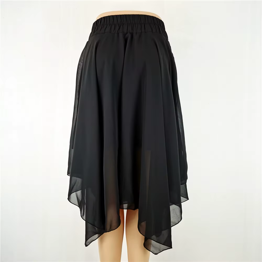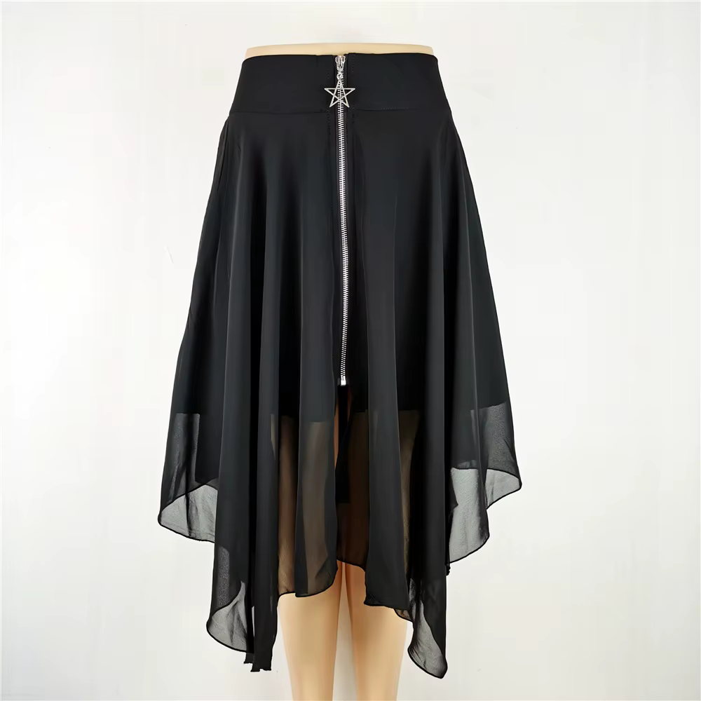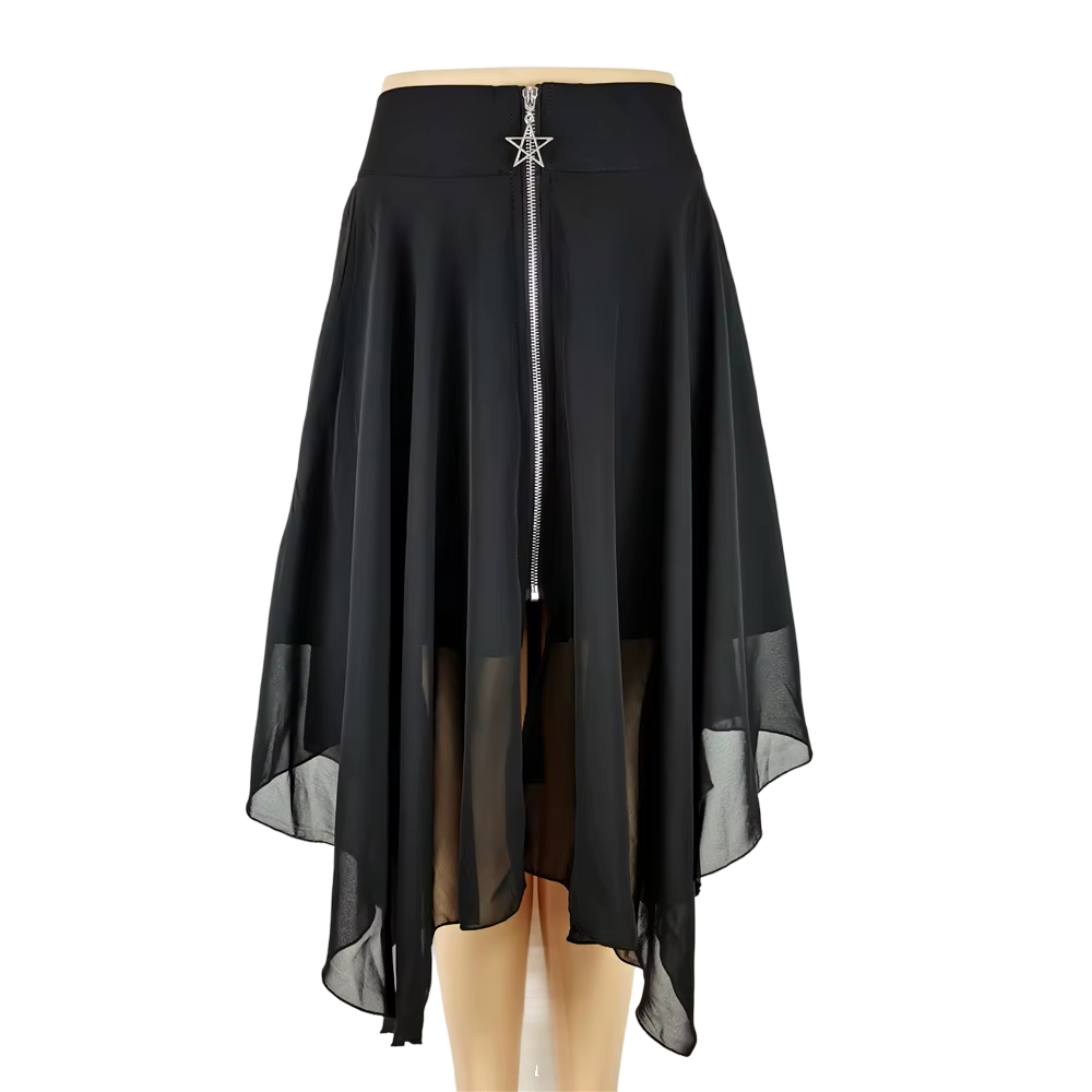 Asymetryczna spódnica, z zamkiem - czarnaSzukasz spódnicy, która łączy elegancję z odrobiną zmysłowości? Ta spódnica z subtelnymi, przezroczystymi akcentami to idealna opcja! Wykonana z lekkiego materiału, zapewnia komfort przez cały dzień, a jednocześnie dodaje odrobiny tajemniczości i seksapilu. Jej unikalny krój sprawia, że każda kobieta poczuje się w niej wyjątkowo! | |