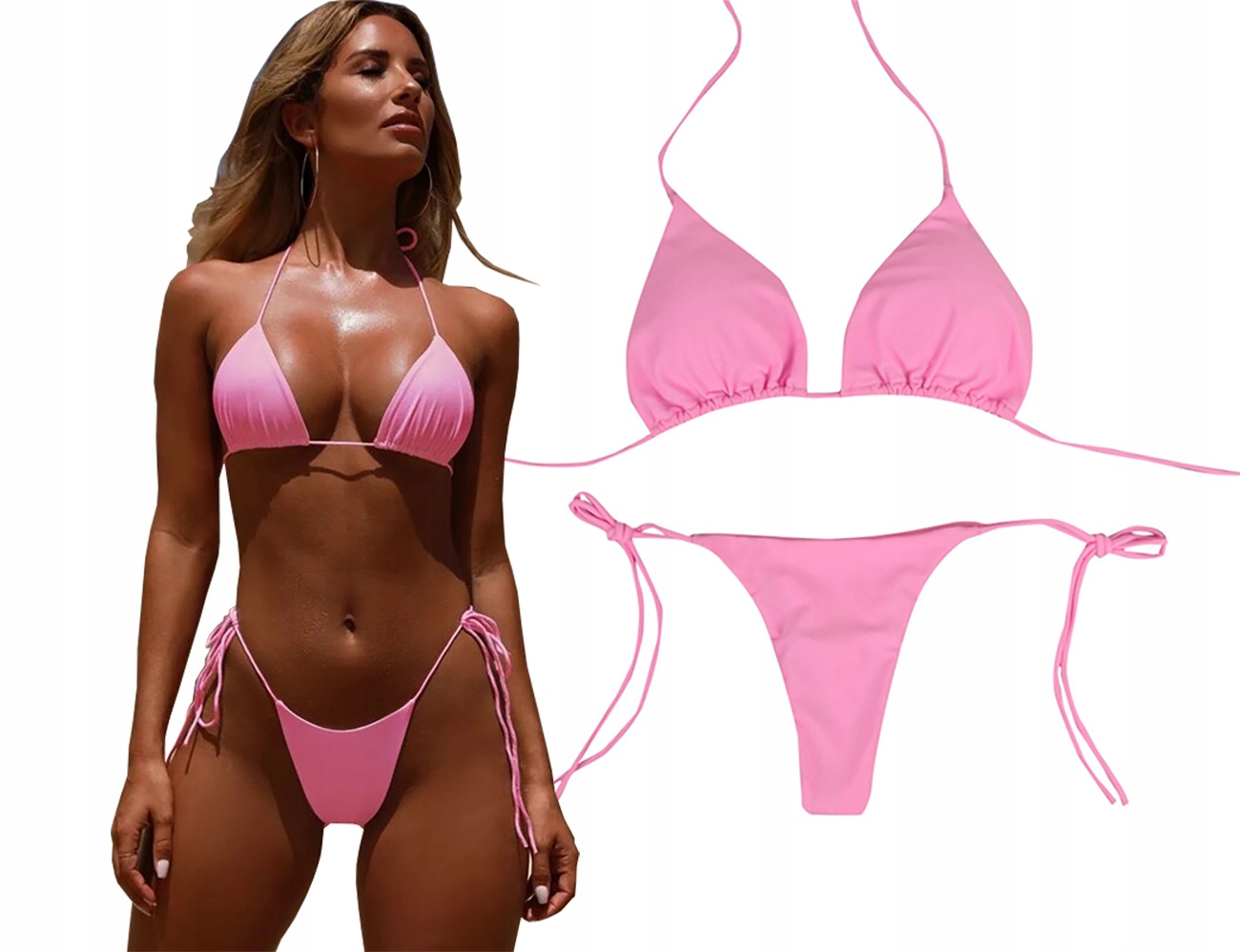 Bikini brazylijskie, wiązany strój kąpielowy - różowy