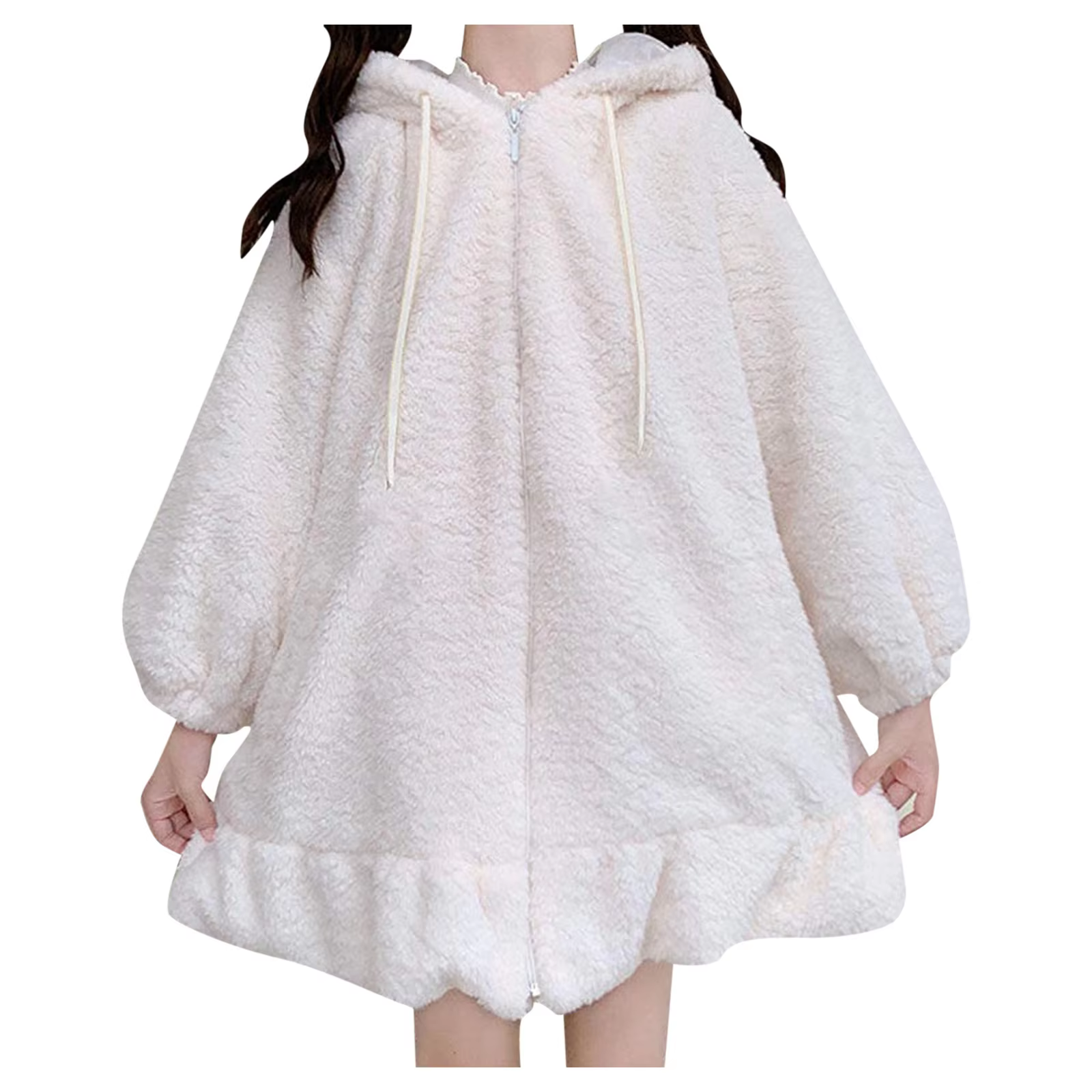 Damska bluza, kaptur z uszami królika - białaDamska bluza z kapturem w stylu królika to doskonała propozycja dla kobiet ceniących oryginalność i wygodę. Uroczy design z pluszowymi uszami królika na kapturze nadaje jej niepowtarzalnego charakteru, sprawiając, że wyróżnisz się w tłumie. Bluza wykonana z miękkiego, pluszowego materiału jest nie tylko przyjemna w dotyku, ale również doskonale chroni przed chłodem, co czyni ją idealnym wyborem na chłodniejsze dni. Luźny krój zapewnia pełen komfort noszenia, a delikatne falbanki dodają dziewczęcego uroku. | ![]() |