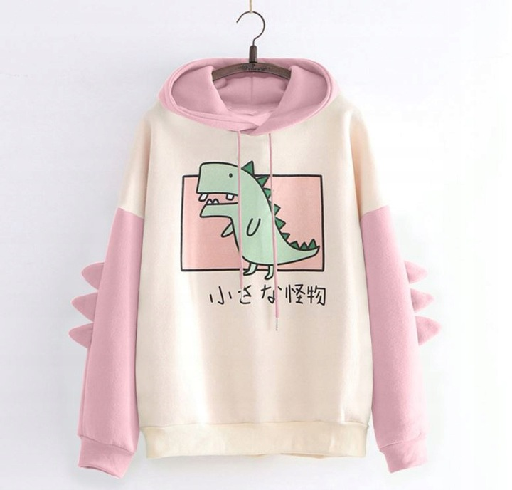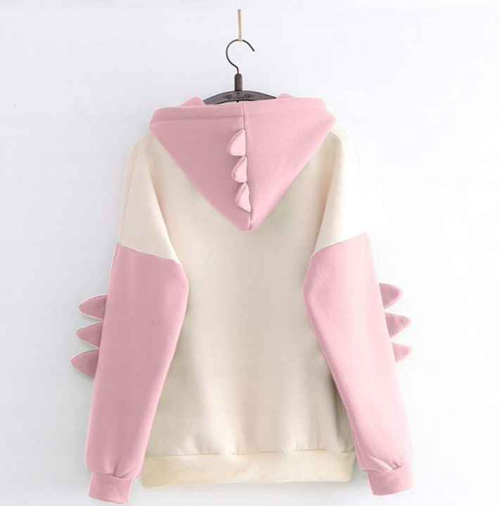 Bluza z kapturem z dinozaurem - różowe rękawyUrocza damska bluza z kapturem, która ozdobiona jest motywem z dinozaurem. Jest to idealna propozycja dla fanek oryginalnych i wygodnych ubrań. Bluza wykonana jest z miękkiego i przyjemnego materiału. Zapewnia komfort i ciepło, a stylowy kaptur i detale na rękawach w postaci kolców dinozaura - nadają niepowtarzalnego charakteru. | ![]() |