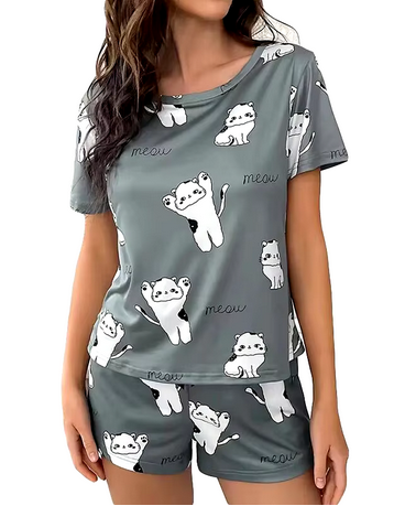 Damska dwuczęściowa piżama z motywem kotków - szara
