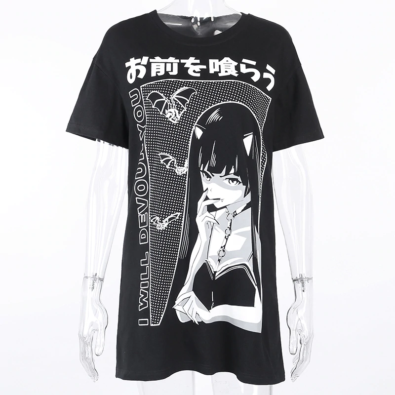 Damska koszulka oversize z nadrukiem anime to propozycja idealna dla odważnych kobiet, które kochają modę alternatywną i chcą przyciągać spojrzenia!
