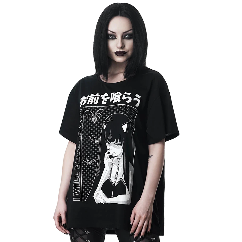 Ta koszulka to połączenie wygody i wyrazistego stylu. Idealna dla fanek kultury japońskiej, stylu goth, alternatywnego czy streetwear. Doskonała również jako oryginalny prezent!