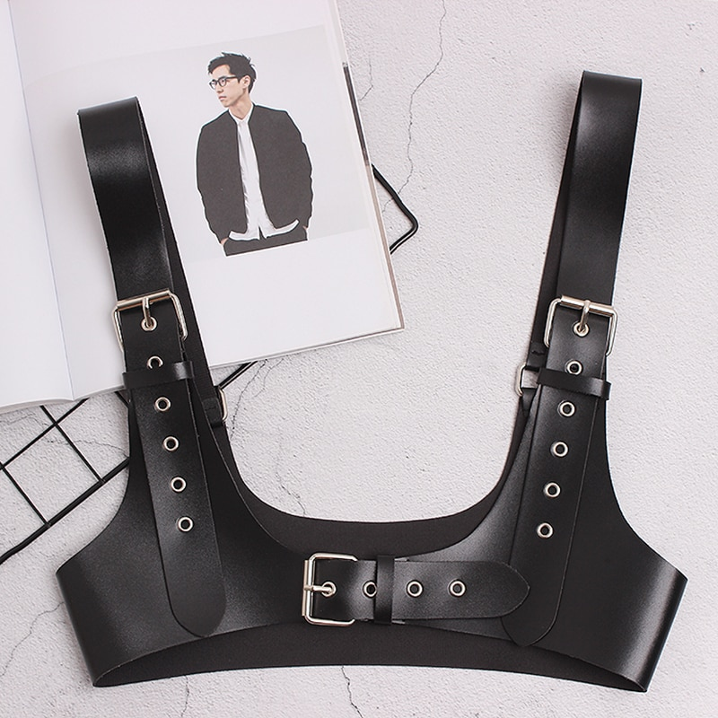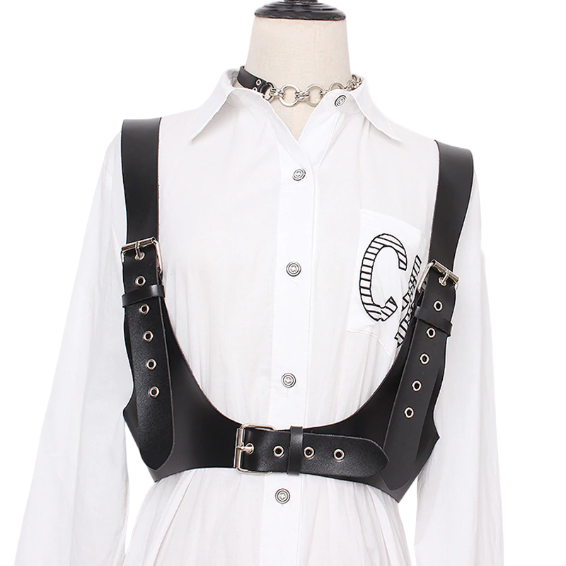 Ta damska skórzana uprząż w formie kamizelki to idealny wybór! Może być noszona na koszulę, sukienkę lub bieliznę, tworząc zmysłowy, odważny i modny look. Perfekcyjna zarówno do codziennych outfitów w stylu gotyckim czy punkowym, jak i do odważnych, intymnych chwil w klimacie BDSM.