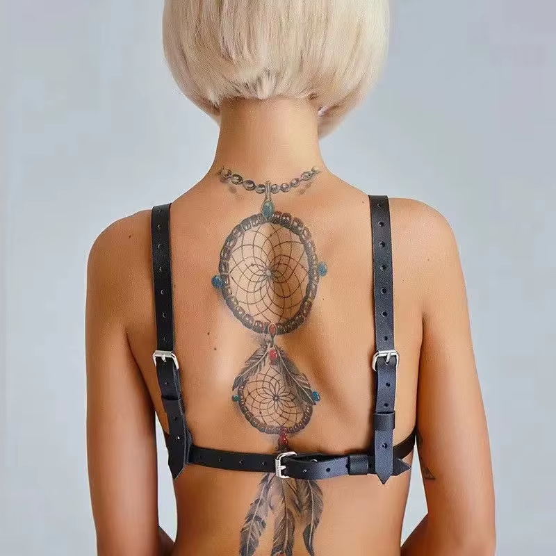 Damska uprząż, biustonosz otwarty, BDSMChcesz wyróżnić się wyjątkowym, odważnym stylem? Ten biustonosz w formie skórzanej uprzęży to idealny wybór dla kobiet, które pragną podkreślić swoją pewność siebie, zmysłowość i charakter. To nie tylko bielizna – to manifestacja odwagi, niezależności i kobiecej siły. Niezależnie od tego, czy chcesz dodać pikanterii w sypialni, czy uzupełnić odważną stylizację na imprezę, festiwal lub sesję zdjęciową – ta uprząż sprawdzi się doskonale! Uprząż ze skóry ekologicznej ma otwarte miseczki i regulowane paski, dzięki czemu można ją dopasować do swoich rozmiarów i czyni to uniwersalnym prezentem; również dodatkiem do sesji zdjęciowej. Ozdobne nity i osłonki na brodawki dodają drapieżności. Dlaczego warto kupić?