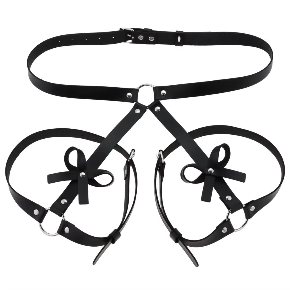 Uprząż na biodra, która ma dodatkowe ozdoby kokardki. Stylowa i oryginalna.