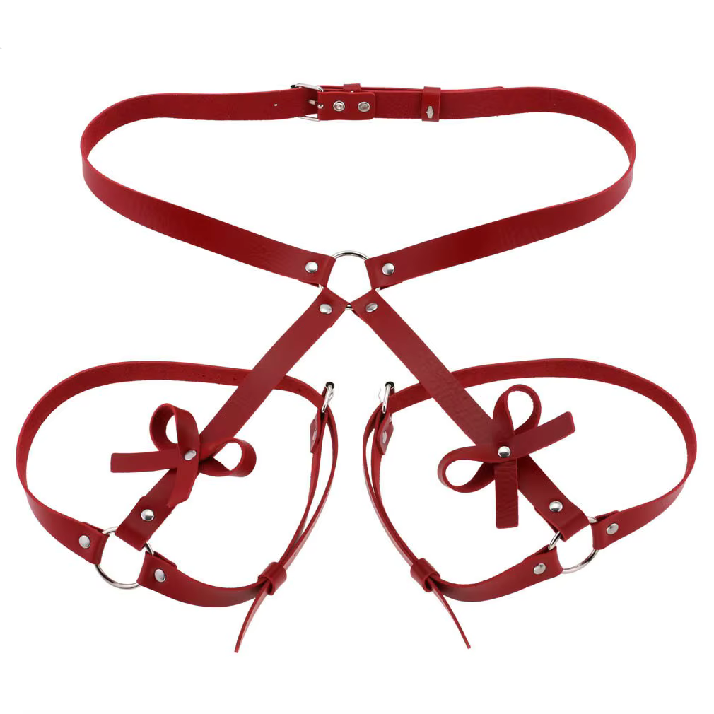 Uprząż na biodra, która ma dodatkowe ozdoby kokardki. Stylowa i oryginalna.