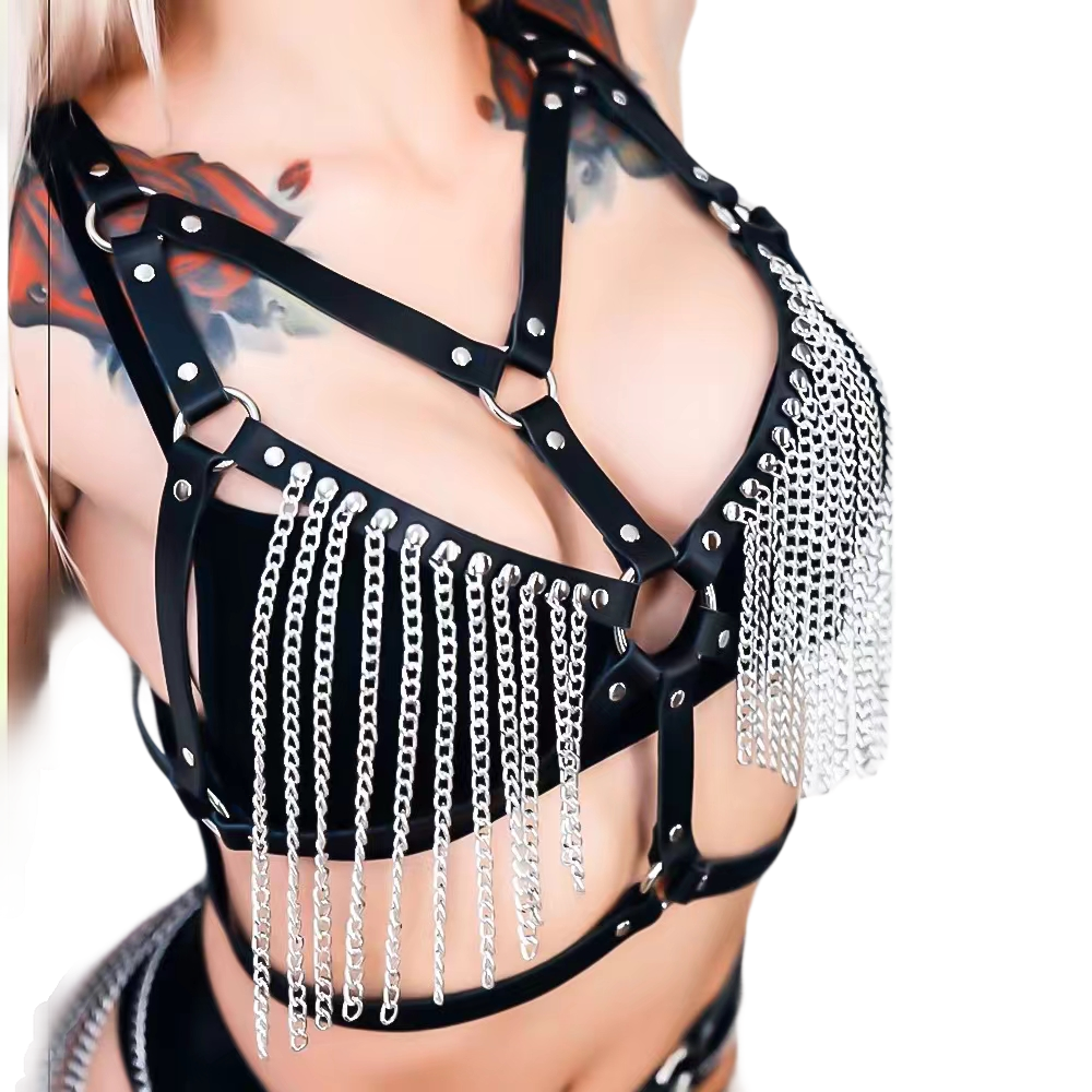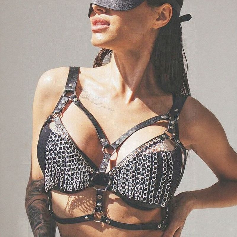 Damska uprząż na klatkę piersiową, z łańcuszkami