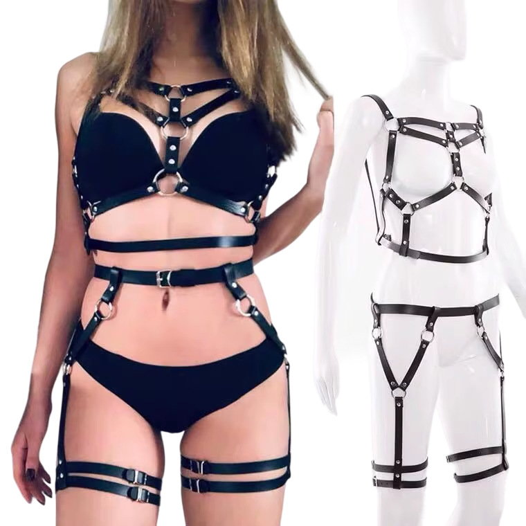 Damska uprząż na tułów i udaChcesz podkreślić swoją kobiecość i dodać stylizacjom odrobiny pikanterii? Ta damska uprząż na klatkę piersiową i uda to idealny wybór dla kobiet pewnych siebie, które cenią oryginalne dodatki i odważny design. Regulowane paski z metalowymi okuciami nadają całości wyjątkowego charakteru – świetnie sprawdzi się zarówno w sypialni, jak i jako efektowny element stylizacji na imprezę czy sesję zdjęciową. Uprząż będzie doskonałym uzupełnieniem kostiumu do sesji zdjęciowej, stroju na imprezę. Nada się też jako dodatek do stroju codziennego u odważnych osób. Dlaczego warto kupić?