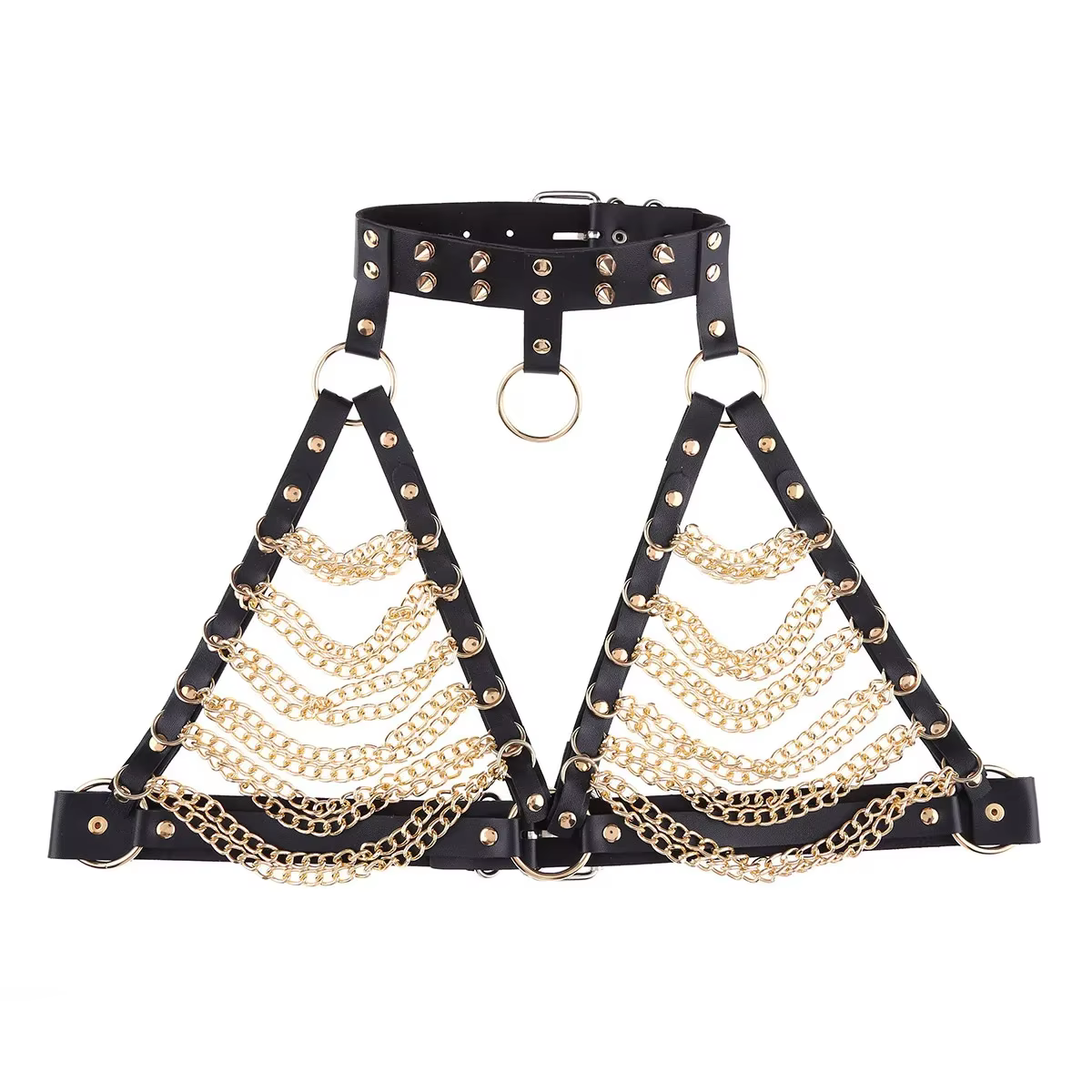Damska uprząż typu biustonosz, z łańcuszkami i obrożą