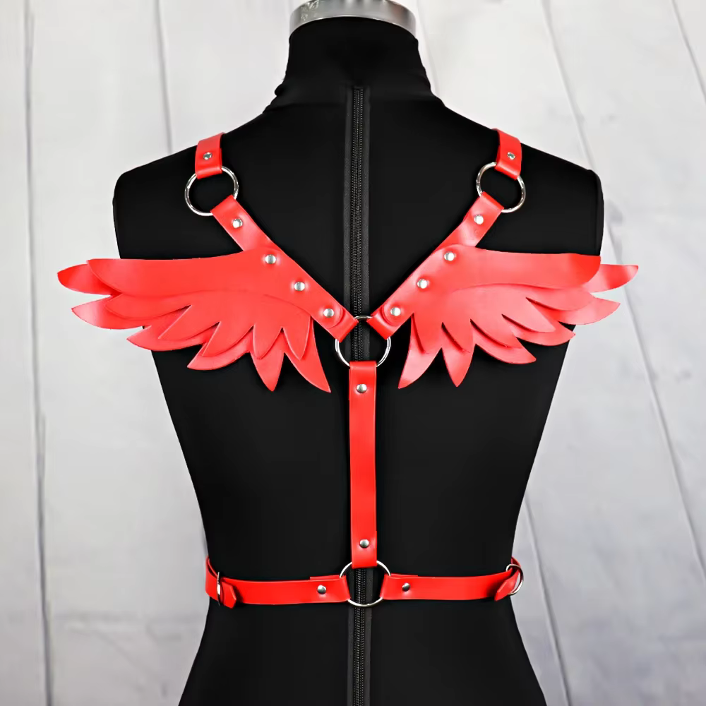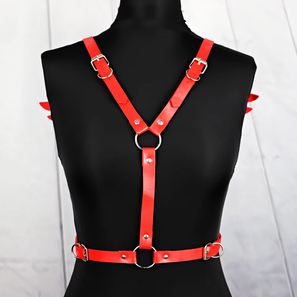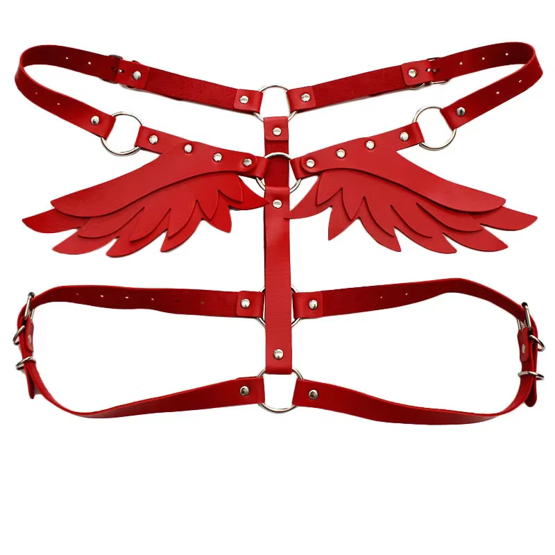 Damska uprząż ze skrzydłami, ozdobny harnessMarzysz o dodatku, który podkreśli Twoją odwagę, zmysłowość i niepowtarzalny styl? Ta damska uprząż ze skrzydłami to propozycja dla kobiet, które pragną wyróżniać się i dodawać swojej stylizacji nuty pikanterii. Efektowne skrzydła na plecach i regulowane paski tworzą unikalny look – idealny zarówno do erotycznych kreacji, jak i jako ekstrawagancki dodatek do codziennych outfitów. Regulowana uprząż o ciekawym wzorze, ma dodatkowo skrzydła, które świetnie uzupełnią stylizację lub będą odpowiednim dodatkiem do sesji zdjęciowej. Dlaczego warto kupić?