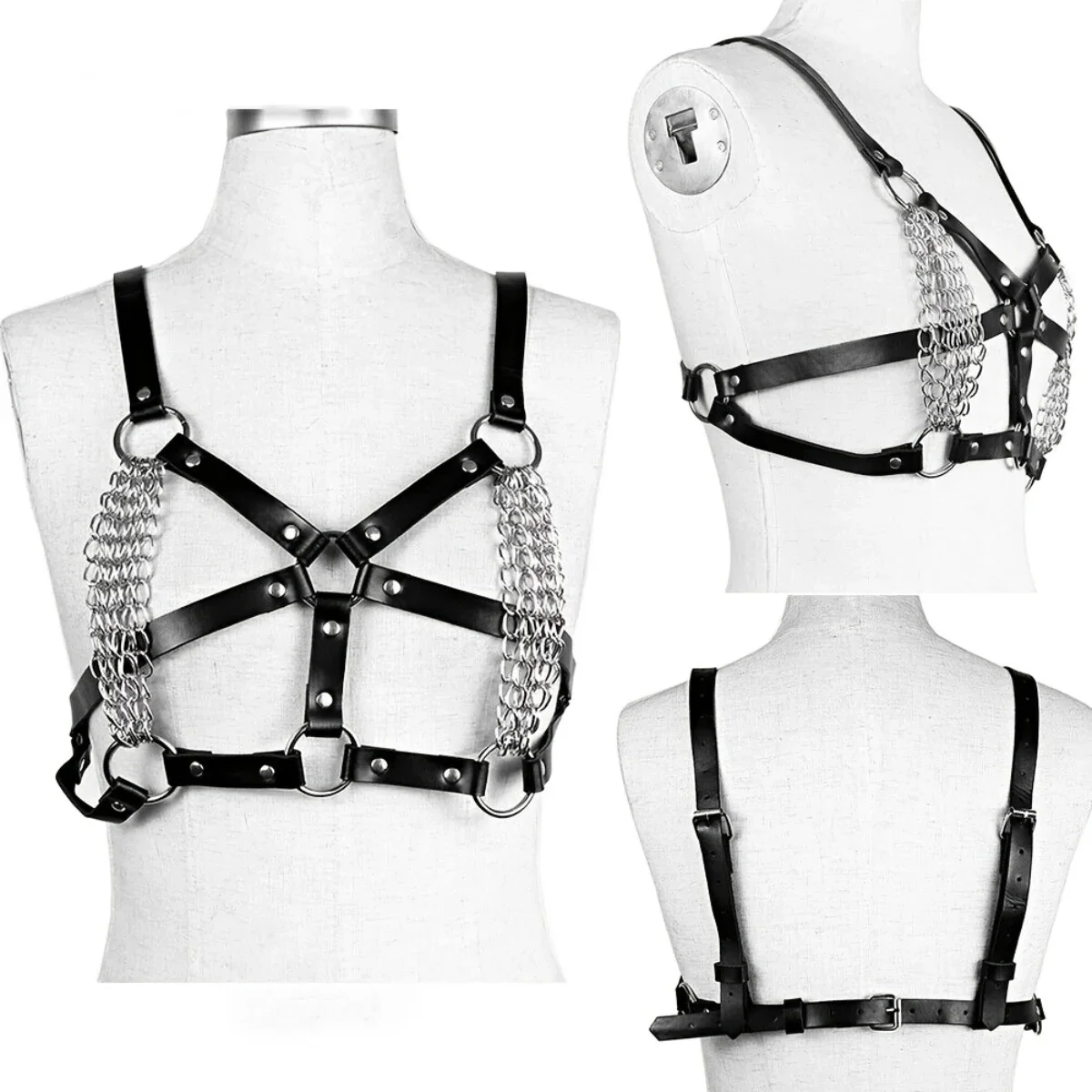 Ten damski biustonosz erotyczny z pasków i srebrnych łańcuszków to propozycja stworzona dla odważnych kobiet, które pragną wyróżniać się zarówno w sypialni, jak i na imprezie czy pokazie mody alternatywnej. Jego wyjątkowy design łączy w sobie zmysłowość, drapieżność i nowoczesny styl – idealny dla miłośniczek mody BDSM, fetish oraz nietuzinkowych dodatków.