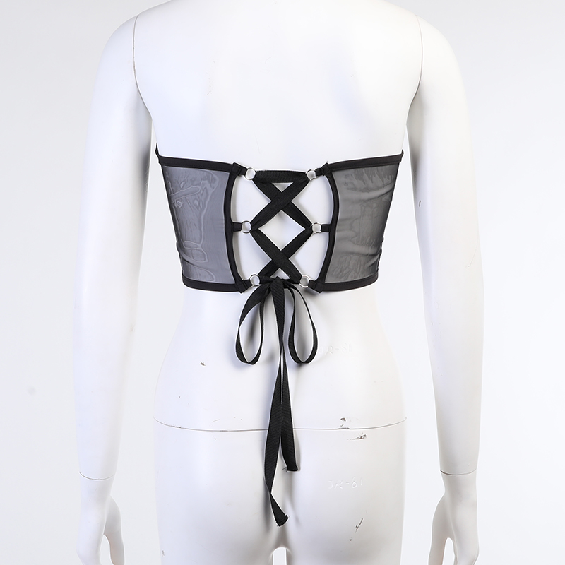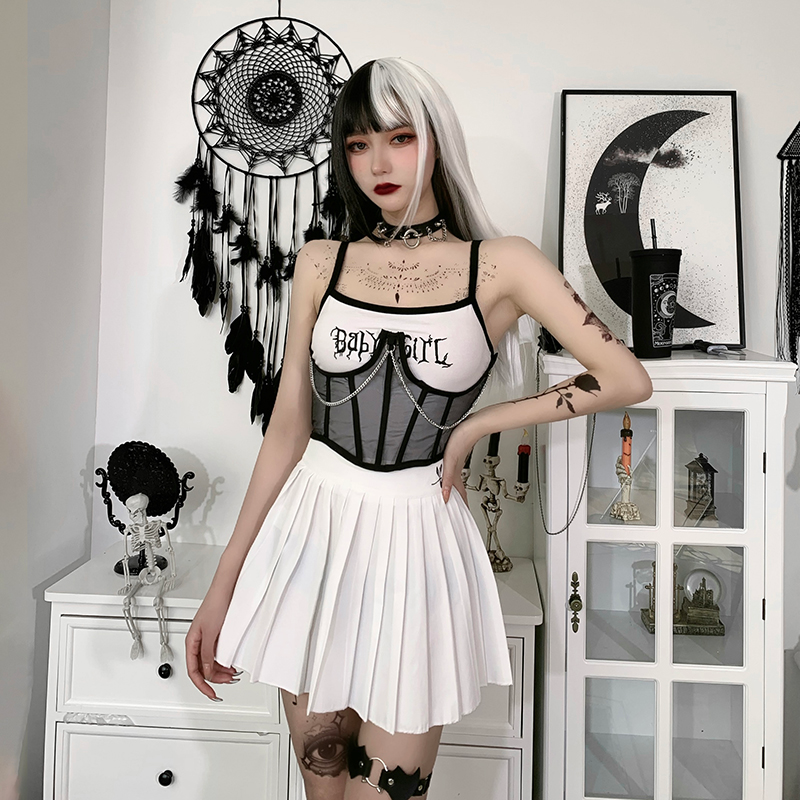 - Ozdobne łańcuszki i wiązanie z tyłu – zmysłowy, gotycki charakter.