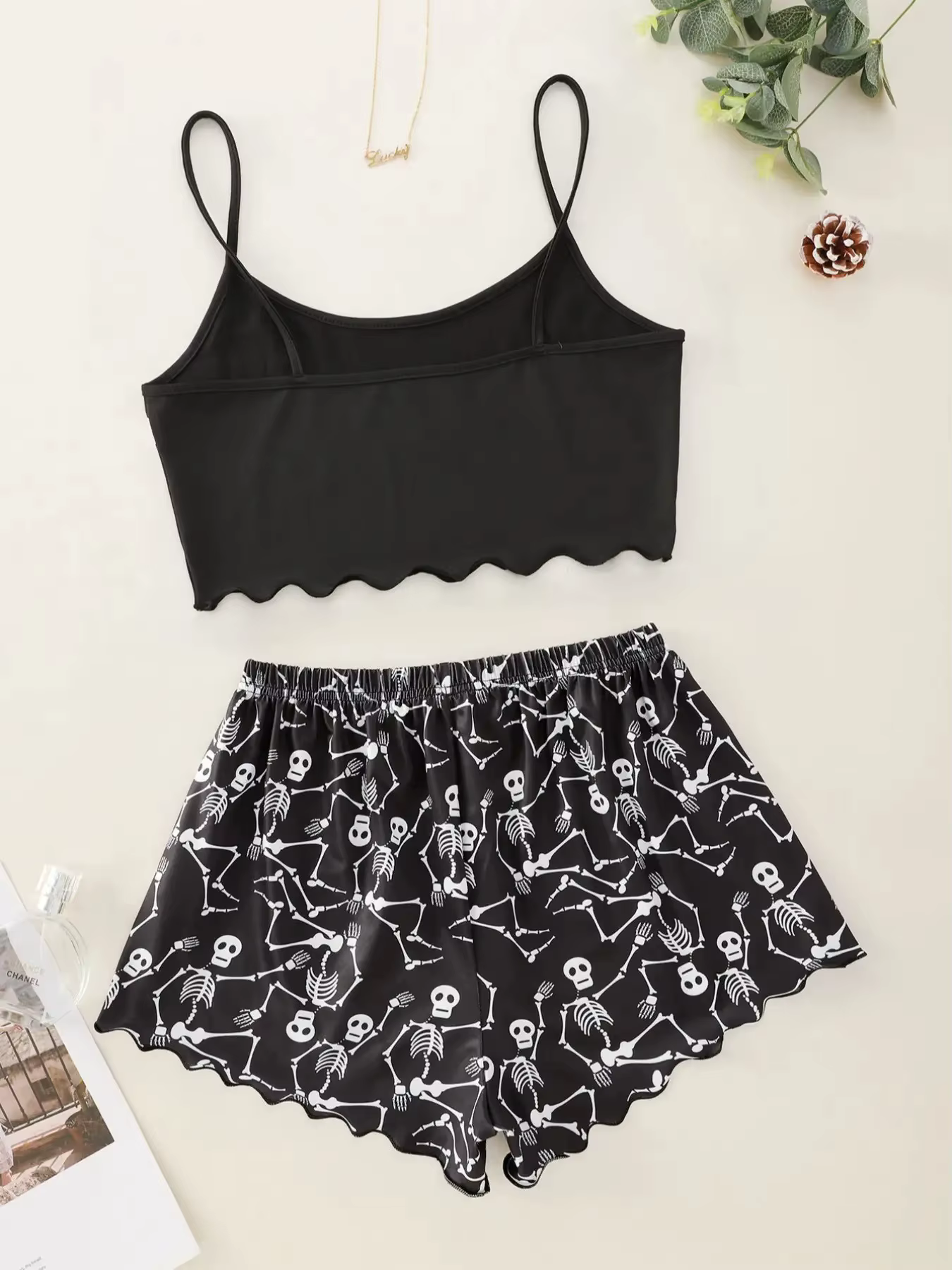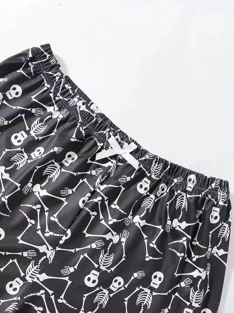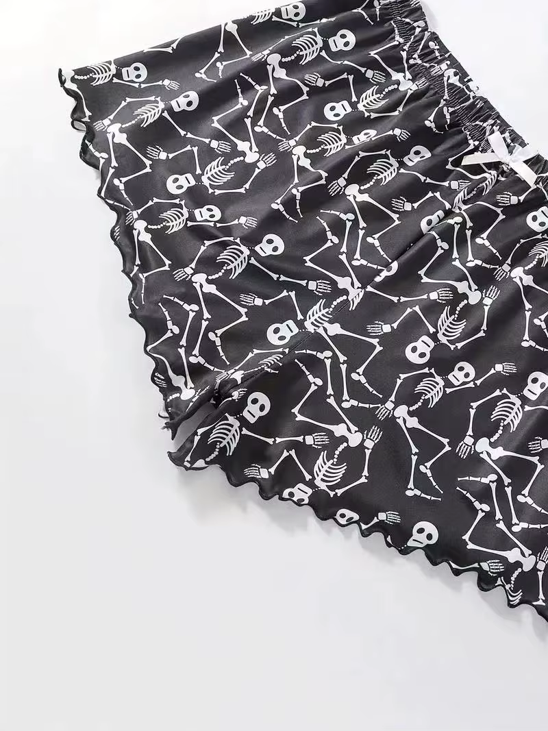 Damska, krótka piżama z ciekawym nadrukiem - szkieletów. Idealny wybór na Halloween!
