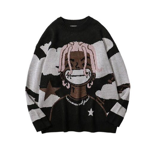 Damski sweter oversize, grafika streetwear - niebieskiTen damski sweter o streetwearowym designie z dużą grafiką przedstawiającą postać z uśmiechem przyciąga uwagę i dodaje każdej stylizacji wyrazistości. Sweter wykonany jest z wysokiej jakości materiału, który zapewnia komfort i ciepło, idealny na chłodniejsze dni. Jego luźny krój dodaje stylu i swobody ruchów, co czyni go świetnym wyborem na co dzień. Stonowane kolory z akcentem miętowego odcienia tworzą modny, oryginalny look, który z pewnością wyróżni się w tłumie. | ![]() |