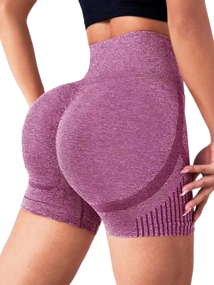 Damskie spodenki push-up, modelujące, bezszwowe, wysoki stan - fioletowePodkreśl swoją sylwetkę i poczuj się pewnie podczas każdego treningu! Damskie bezszwowe spodenki sportowe z efektem push-up to idealne połączenie stylu, komfortu i funkcjonalności. Dzięki zaawansowanej technologii modelowania ciała podkreślą Twoje krągłości i zapewnią maksymalną wygodę. Styl i komfort w jednym! Te modne spodenki możesz nosić zarówno na treningi, jak i na co dzień, łącząc je z crop topami, oversize’owymi bluzami czy sportowymi butami. Bez względu na okazję, zawsze będziesz wyglądać stylowo i czuć się pewnie.