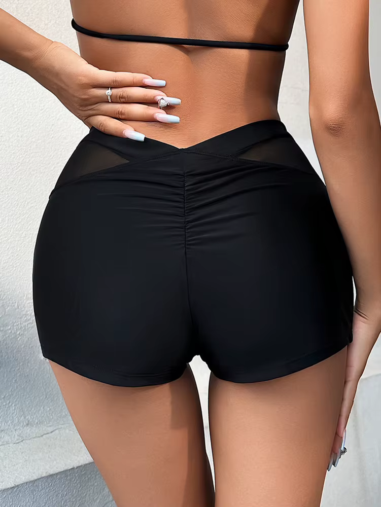 Damskie spodenki z siateczką, wysoki stan - czarneStylowe i wygodne damskie spodenki sportowe – idealne na siłownię, taniec, fitness czy codzienne aktywności! Wykonane z wysokiej jakości elastycznego materiału, który doskonale dopasowuje się do sylwetki, podkreślając kobiece kształty.