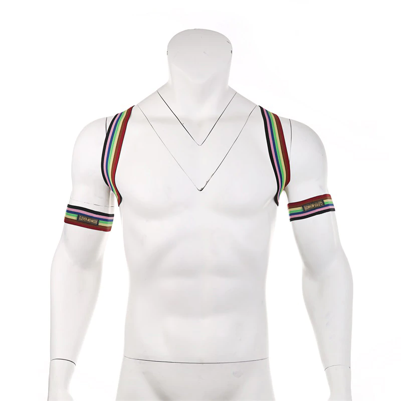 Męska uprząż w kolorach tęczy od to doskonały wybór dla odważnych, pewnych siebie mężczyzn, którzy lubią eksperymentować ze stylem i wyrażać siebie bez kompromisów.