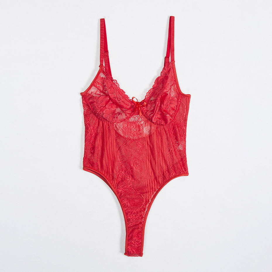 Zmysłowe damskie body to połączenie elegancji i uwodzicielskiego stylu. Wykonane z delikatnej koronki o pięknym wzorze, subtelnie podkreśla sylwetkę, nadając jej wyjątkowego charakteru. Regulowane ramiączka oraz elastyczny materiał zapewniają idealne dopasowanie i komfort noszenia. Body jest idealne na romantyczne wieczory oraz jako wyjątkowy element bielizny na specjalne okazje. To must-have w garderobie każdej kobiety, która ceni sobie wyjątkowy styl i luksusowy wygląd. Idealny pomysł na prezent! | ![]() |