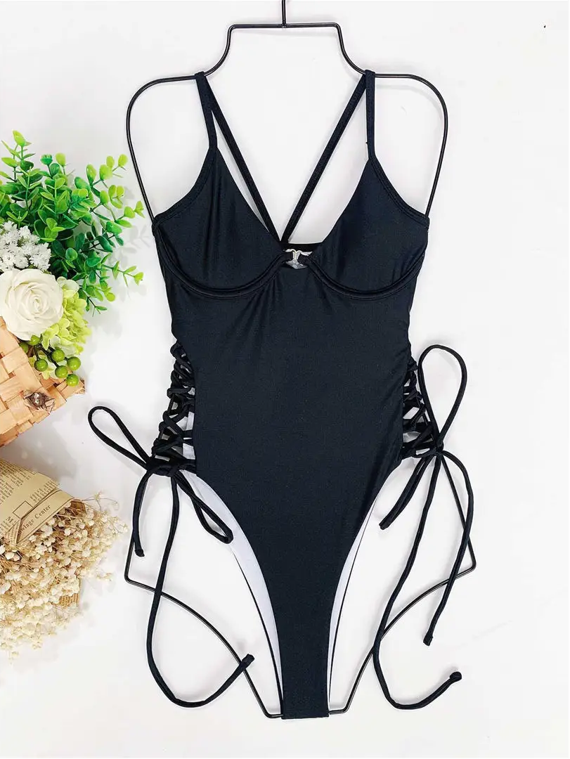 Czarny monokini to klasyczny jednoczęściowy strój kąpielowy, który łączy ponadczasową elegancję z nowoczesnym designem. Głęboka czerń tworzy wyrafinowany, uniwersalny wygląd, a wiązane detale po bokach dodają kobiecego uroku i pozwalają na regulację dopasowania. Wyszczuplający krój optycznie modeluje sylwetkę i podkreśla naturalne piękno kobiecego ciała. | ![]() |