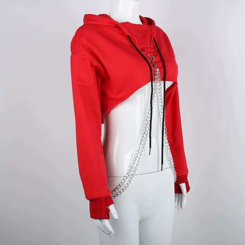 Krótka bluza z łańcuszkami - czerwonaSzukasz unikalnej bluzy, która wyróżnia się na tle innych? Nasza bluza z odważnym łańcuszkiem to modowy hit, który idealnie wpisuje się w miejską stylistykę. Zainspirowana nowoczesnymi trendami, zapewnia nie tylko komfort, ale także efektowny wygląd. | ![]() |