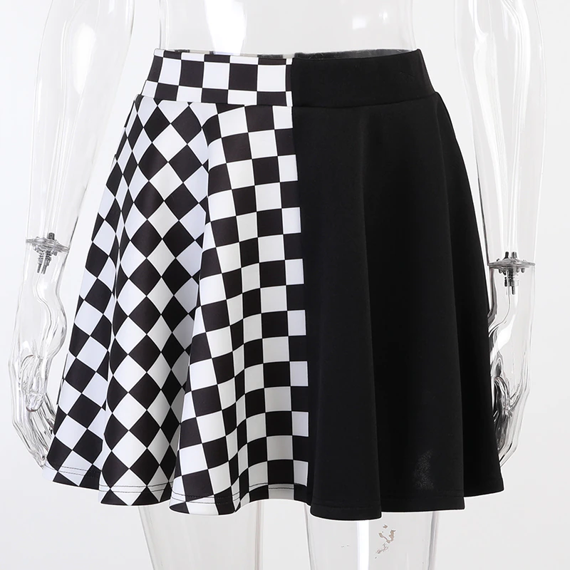 Krótka plisowana spódniczka, w kratkę - czarno-biała