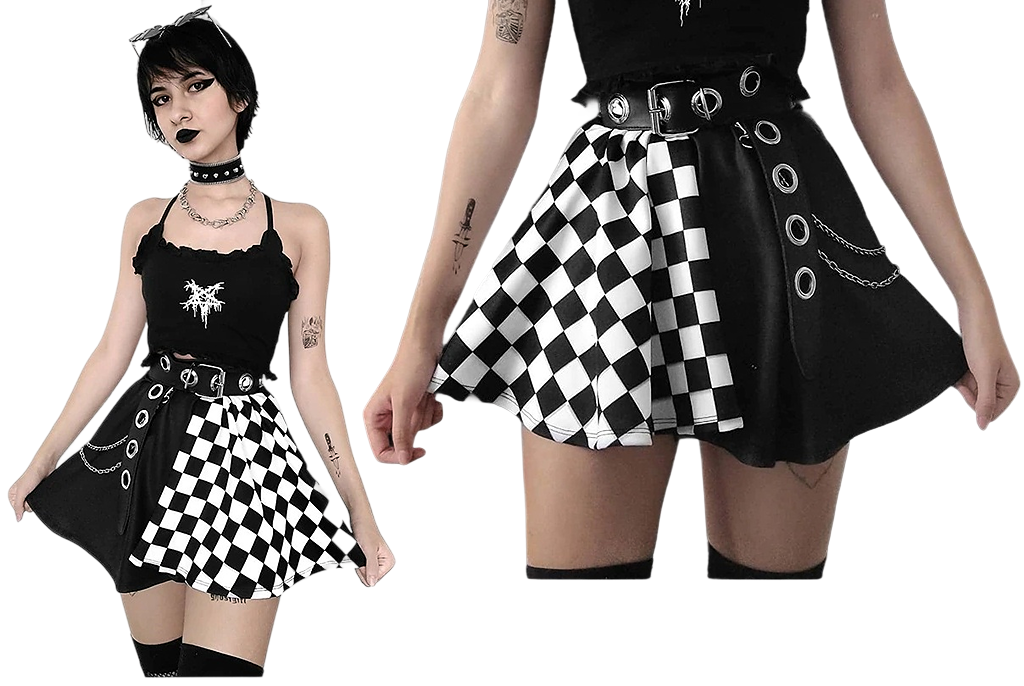 Nasza spódnica to prawdziwa perełka w Twojej szafie! Łączy klasyczny, ponadczasowy wzór w kratę z nowoczesnymi akcentami, które idealnie wpisują się w alternatywną modę. Jej wygodny krój i wyjątkowe detale sprawiają, że jest to must-have dla każdej miłośniczki mody streetwear. |