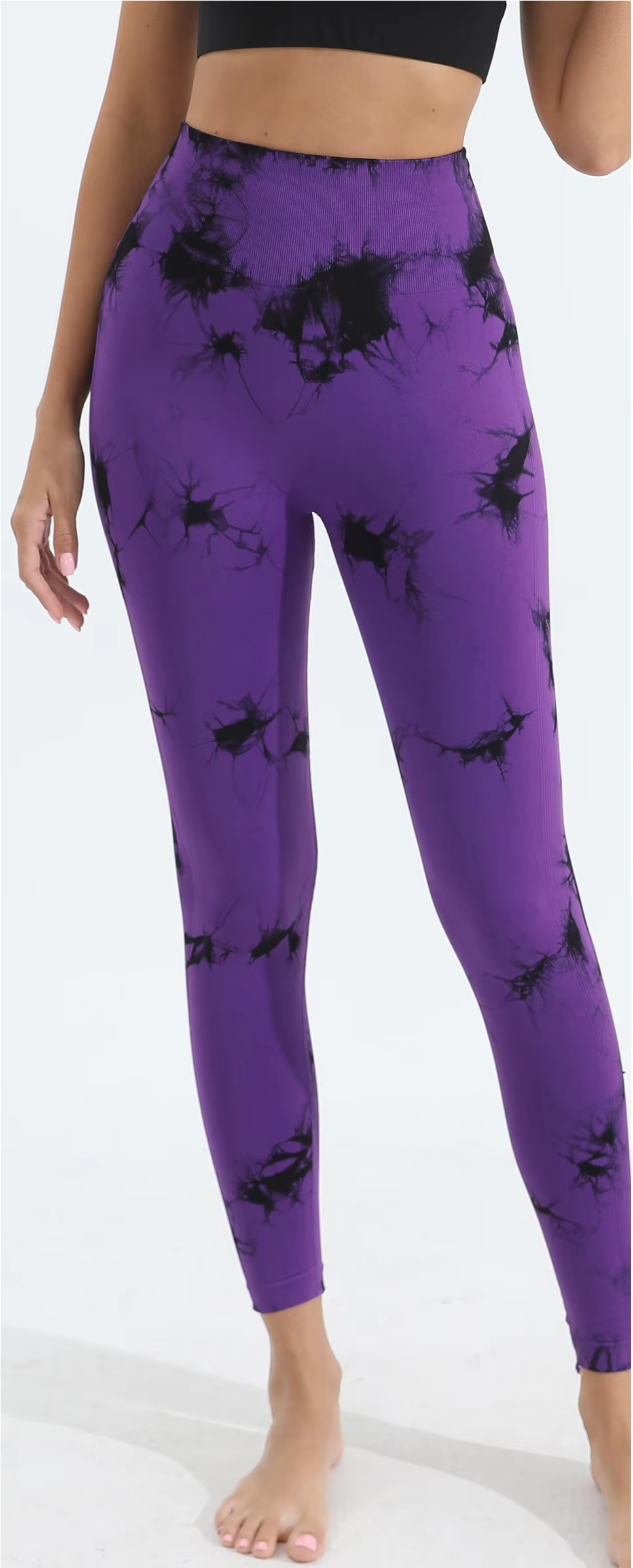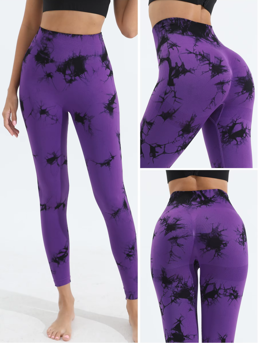 Legginsy damskie push up z wysokim stanem - fioletowe tie-dye - na siłownię, fitness