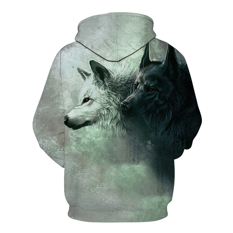 Męska bluza z kapturem, motyw dwóch wilkówPrzedstawiamy unikalną męską bluzę z kapturem z efektownym nadrukiem przedstawiającym dwa wilki, symbolizujące siłę i harmonię. Bluza została wykonana z wysokiej jakości materiału, który zapewnia wygodę i komfort noszenia przez cały dzień. Idealna na chłodniejsze dni, doskonale sprawdzi się zarówno na co dzień, jak i podczas aktywnego wypoczynku. Posiada klasyczny fason z kapturem i kieszenią typu kangur, co podkreśla jej funkcjonalność. Grafika przedstawiająca wilki w kontrastowych barwach przyciąga wzrok i dodaje oryginalnego charakteru każdej stylizacji. Zalety produktu
