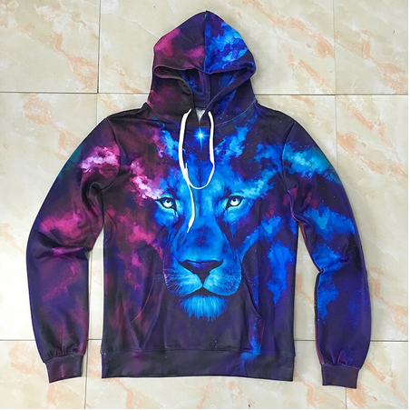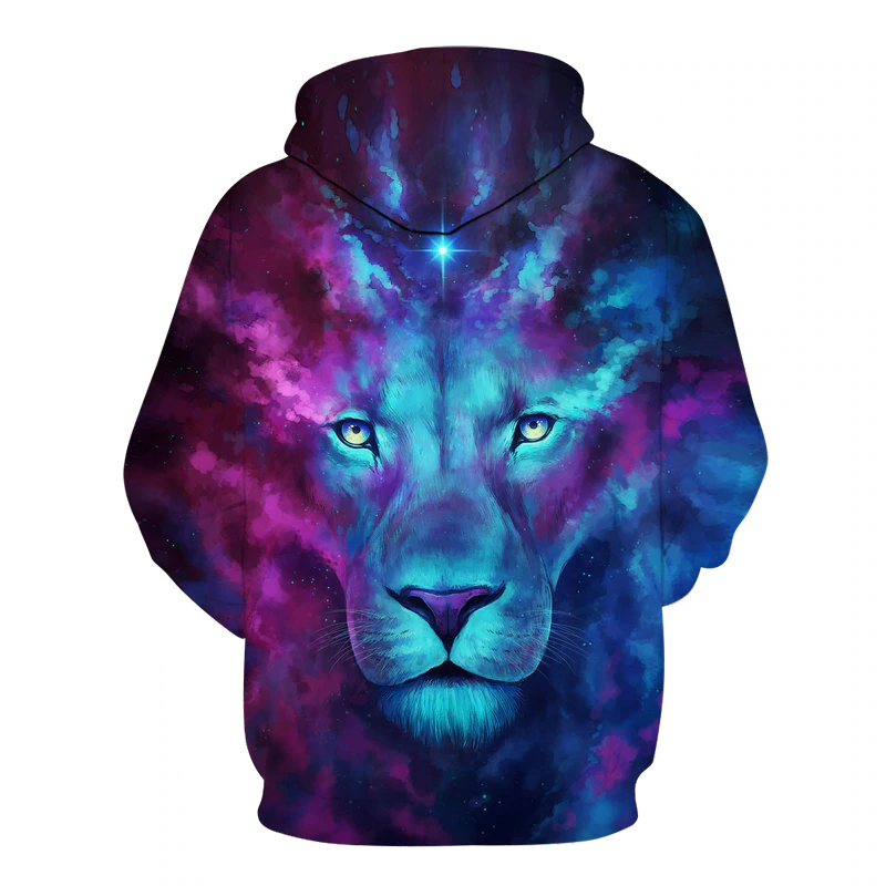 Wybierz męską bluzę z kapturem z motywem kosmicznego lwa, aby dodać swojej garderobie niepowtarzalnego stylu i wygody. To doskonała propozycja dla mężczyzn, którzy chcą wyróżniać się modnym wyglądem. |
