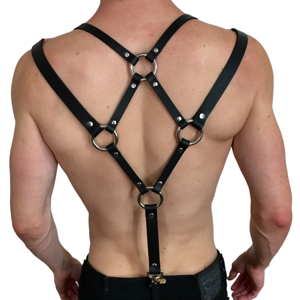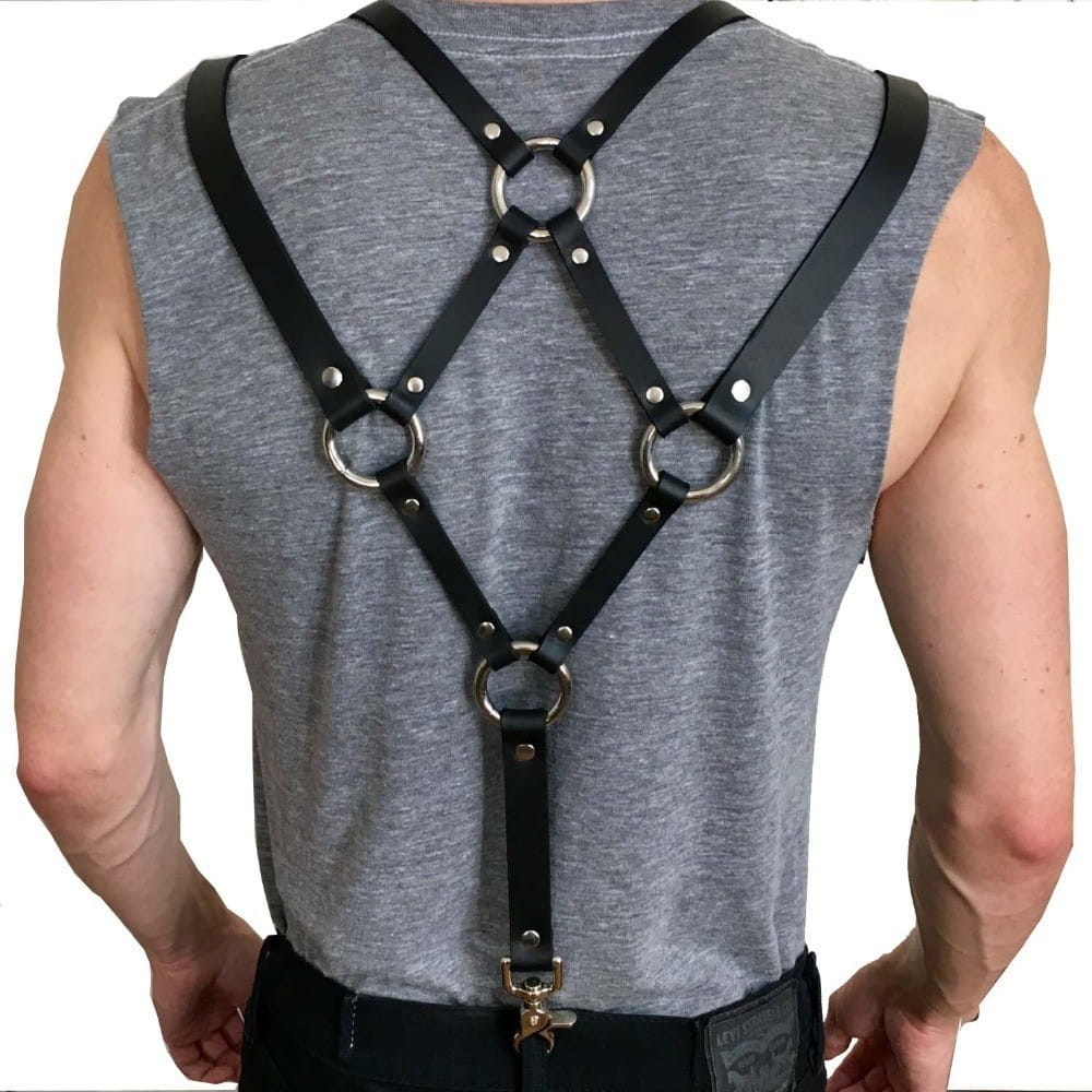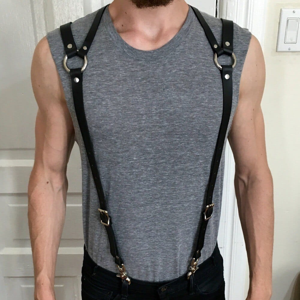 Męska uprząż na plecy w postaci szelek idealnie sprawdzi się jako dodatek do ubioru, ale też jako widoczny element stylizacji.