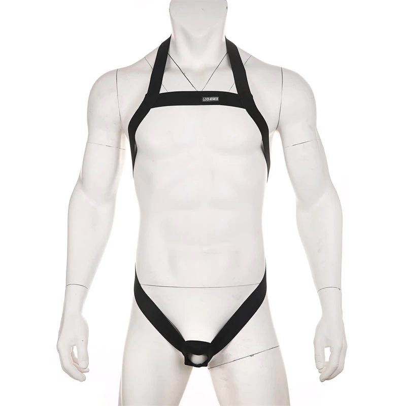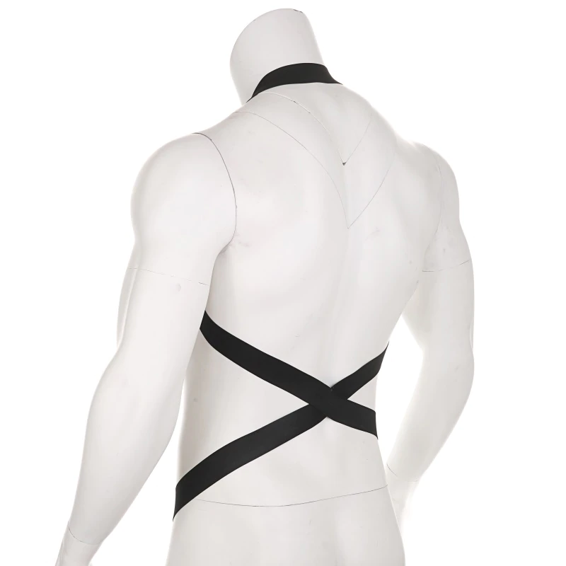 Uprząż wykonana z elastycznych pasków świetnie dopasowuje się do ciała, subtelnie podkreślając muskulaturę, klatkę piersiową i talię. Minimalistyczna forma łączy komfort z maksymalnym efektem wizualnym.