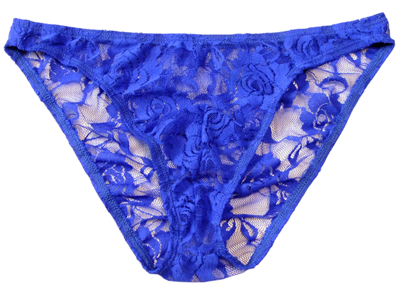 Męskie slipy o wyrazistym kolorze. Jest to koronkowa bielizna, wykonana z elastycznego materiału.