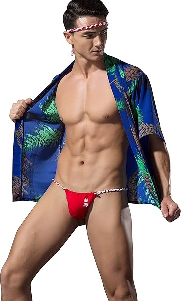 Męskie bawełniane stringi z ozdobnym sznurkiem