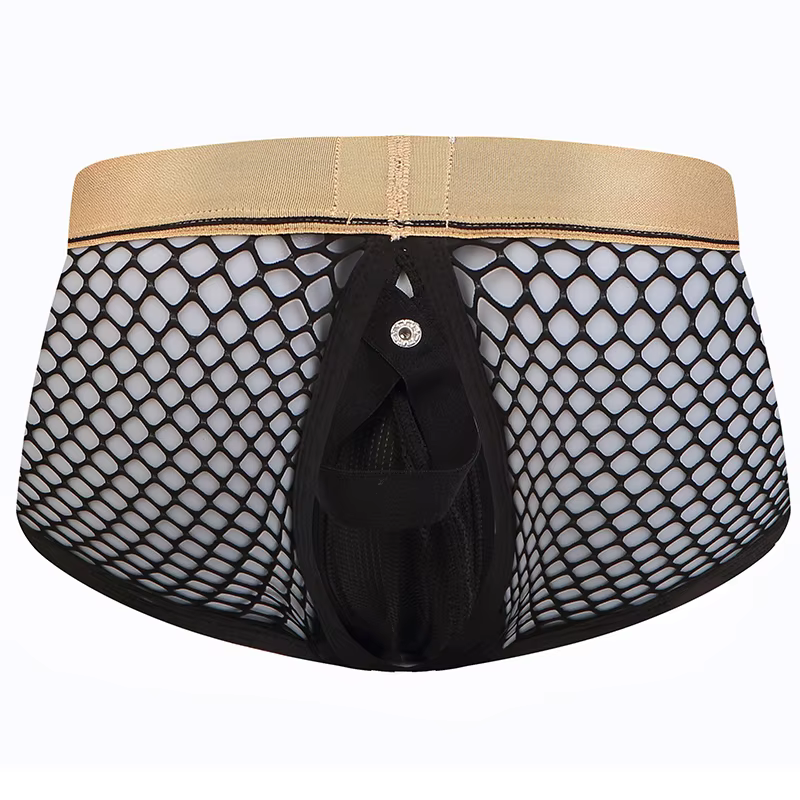Męskie bokserki, siateczkowe, otwierany przód i tył, jockstrap