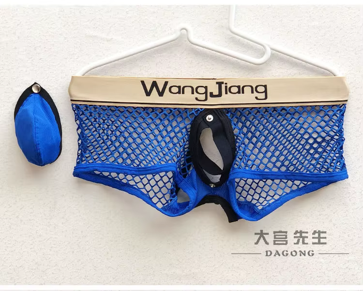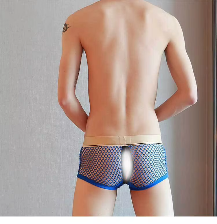 Męskie bokserki, siateczkowe, otwierany przód i tył, jockstrap