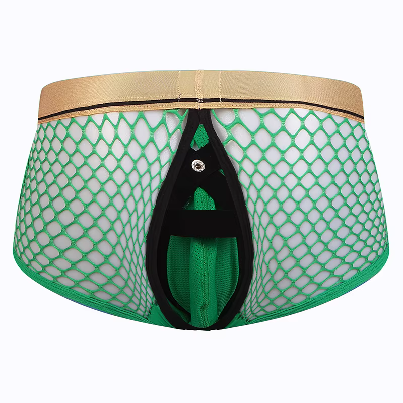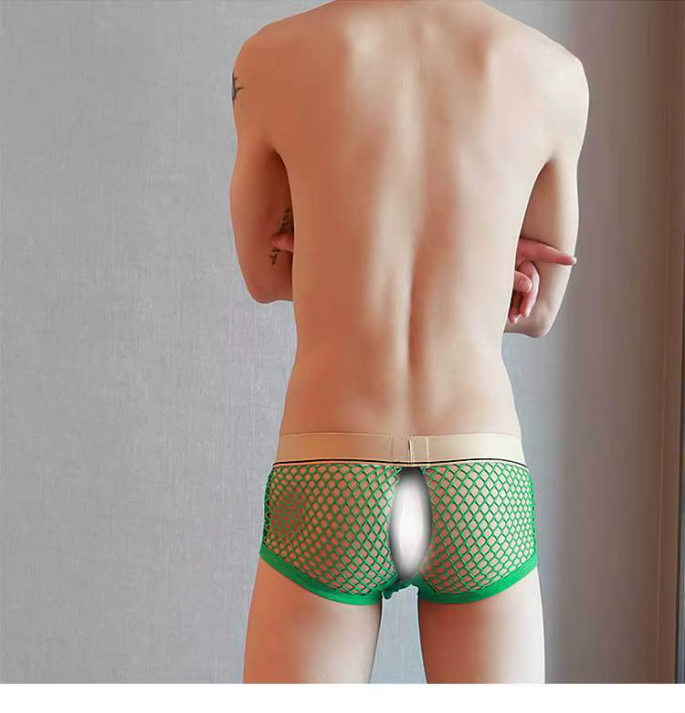 Męskie bokserki, siateczkowe, otwierany przód i tył, jockstrap