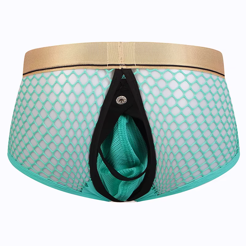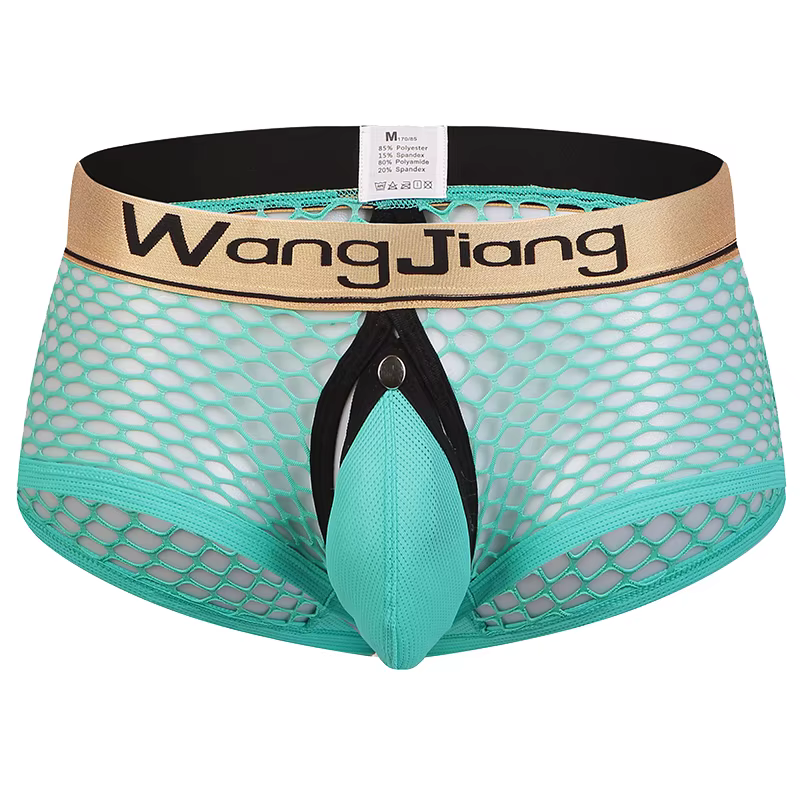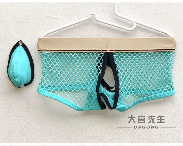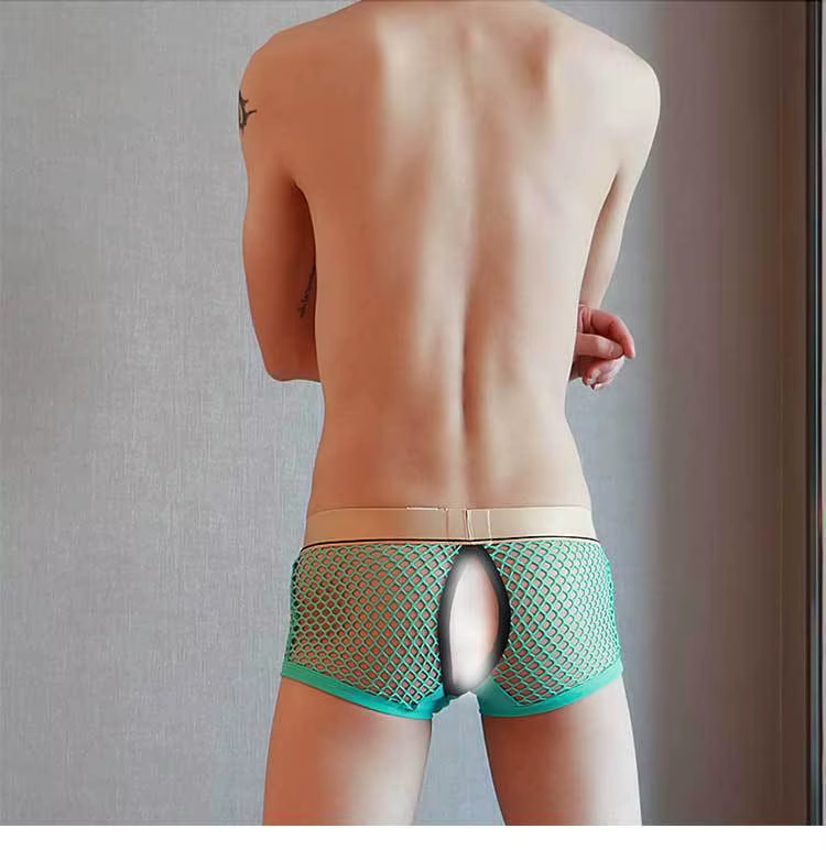 Męskie bokserki, siateczkowe, otwierany przód i tył, jockstrap