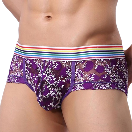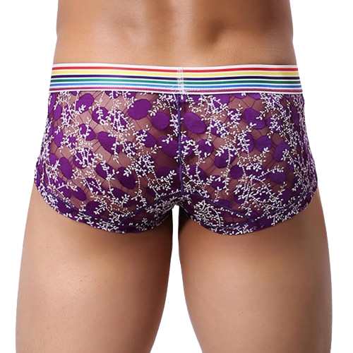 Męskie bokserki koronkowe z kwiecistym wzorem – fioletowe