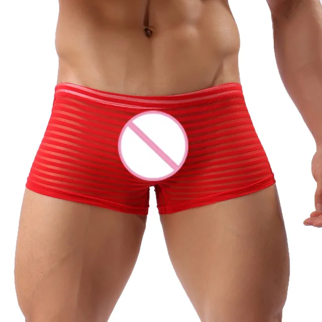 Męskie bokserki przezroczyste z paskami to eleganckie rozwiązanie dla mężczyzn ceniących komfort i nowoczesny design. Wykonane z wysokiej jakości przezroczystego materiału z czerwonymi paskami, zapewniają wygodę noszenia przez cały dzień. Wzór z paskami w połączeniu z czerwoną kolorystyką tworzy ponadczasowy, elegancki wygląd. Paski z czerwonego materiału na przezroczystym tle nadają tym bokserkom nowoczesny charakter, sprawiając, że stanowią doskonały element codziennej garderoby. Wysokiej jakości przezroczysty materiał został zaprojektowany z myślą o komforcie i trwałości. Klasyczny krój bokserek idealnie dopasowuje się do sylwetki, zapewniając swobodę ruchów.