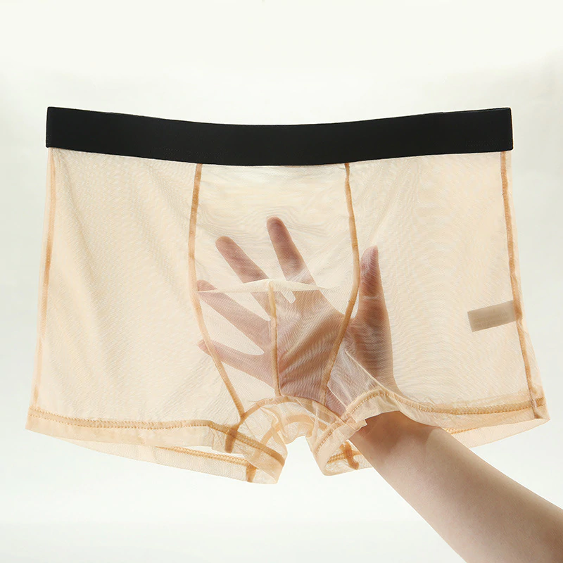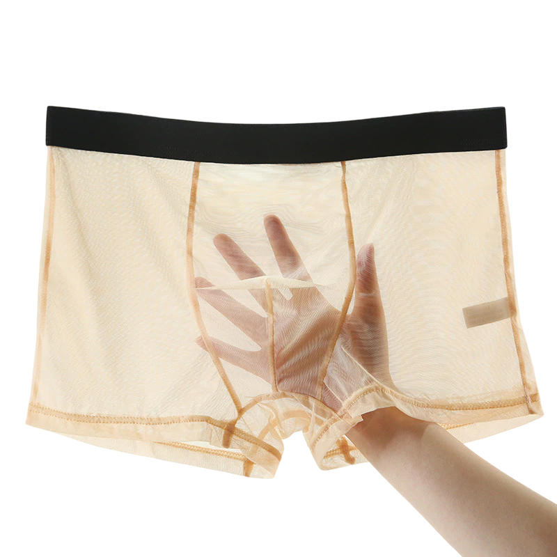 Męskie bokserki - przezroczysteMęskie przezroczyste bokserki to propozycja dla mężczyzn ceniących sobie nowoczesny design i pełną swobodę. Wykonane z delikatnej siateczki, gwarantują maksymalną wentylację i przyciągający wzrok wygląd! Przeźroczysty materiał subtelnie eksponuje sylwetkę, nie tracąc przy tym na wygodzie noszenia. Idealne na wyjątkowe okazje, romantyczne wieczory, a także jako przewiewna bielizna na co dzień. Zalety produktu