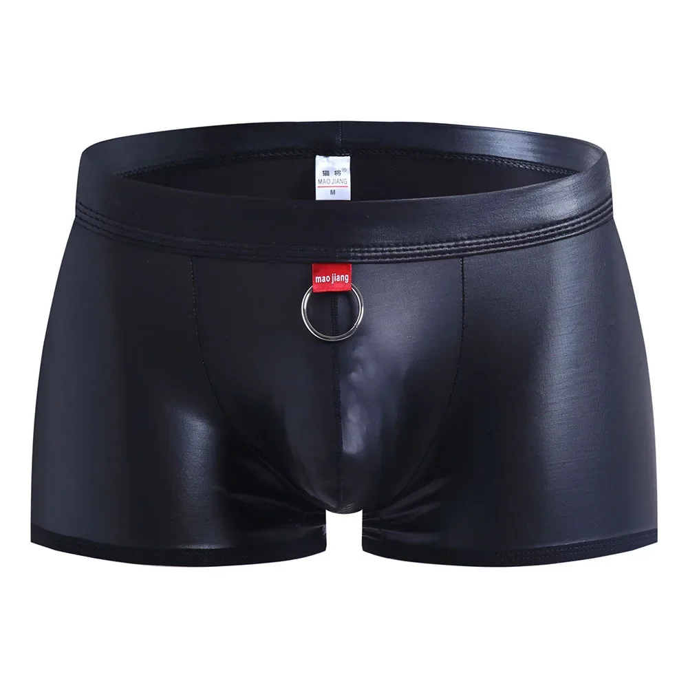 Męskie bokserki w stylu lateksowym z ozdobnym metalowym kółkiem to idealny wybór dla mężczyzn, którzy chcą poczuć się seksownie, stylowo i komfortowo – niezależnie od okazji.