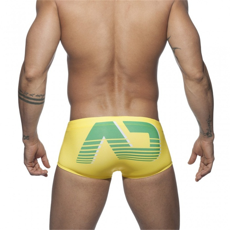 Męskie kąpielówki, dla sportowców, wkładka push-up - żółteOferujemy męskie kąpielówki w nowoczesnym, sportowym stylu, które łączą wyrazisty design z wyjątkowym komfortem. Te kąpielówki wyposażone są w dodatkową wkładkę push up, która zapewnia doskonałe wsparcie i modelowanie sylwetki. Idealne na plażę, basen i inne letnie aktywności, te kąpielówki wyróżniają się na tle innych, dodając pewności siebie i podkreślając męską sylwetkę.