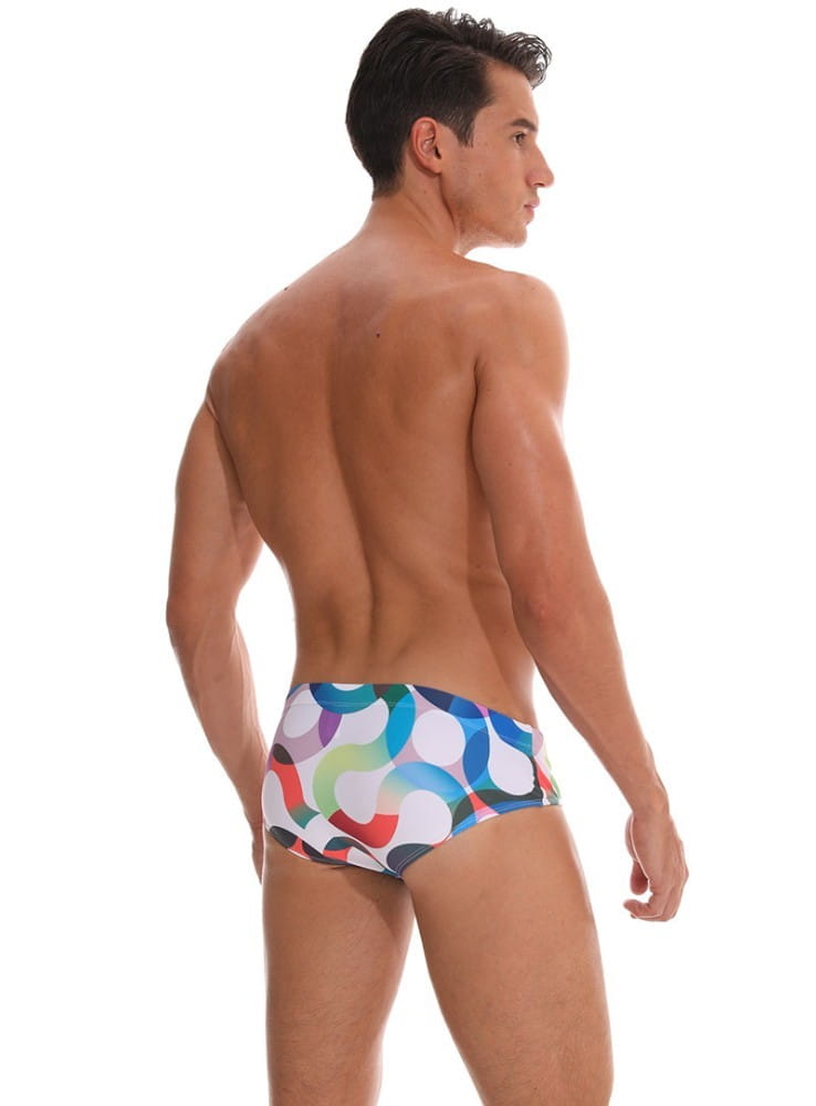 Męskie kąpielówki, motyw kół, z wkładką push-up