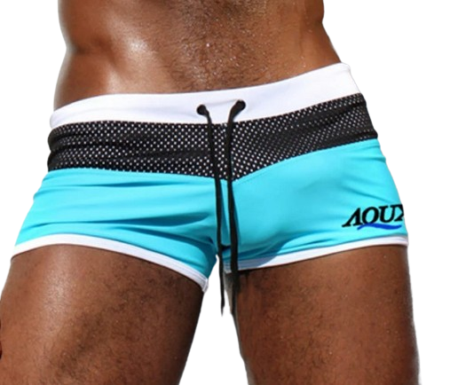 Męskie kąpielówki Aqux o brazylijskim kroju z siateczką, odporne na chlor i UV. Elastyczny pasek i stylowy design gwarantują komfort na plaży i basenie.