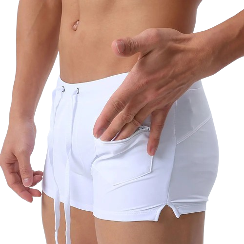 Męskie kąpielówki, szorty wiązane, z kieszonką