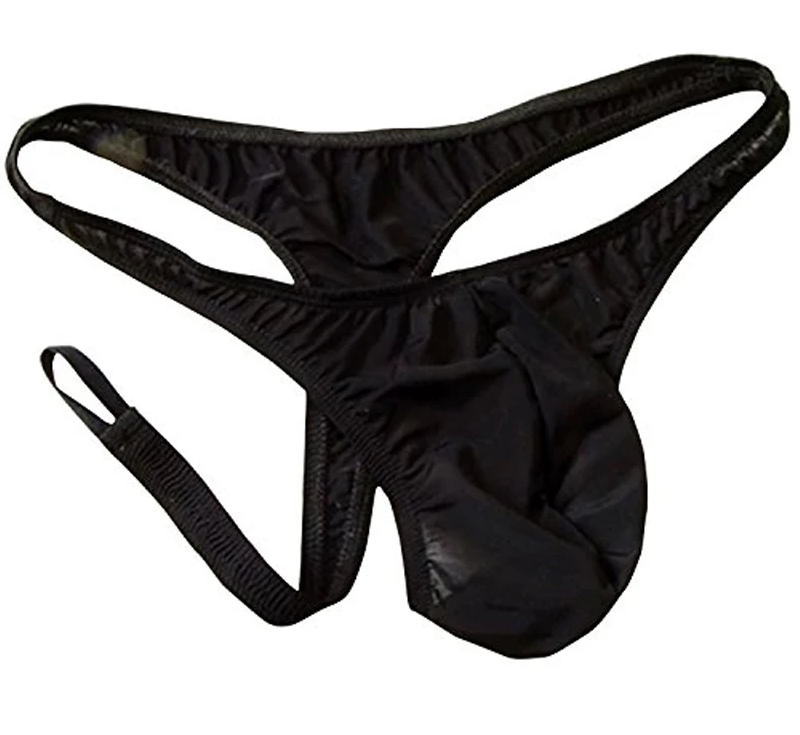 Męskie satynowe stringi z odpinaną kieszonką - czarne