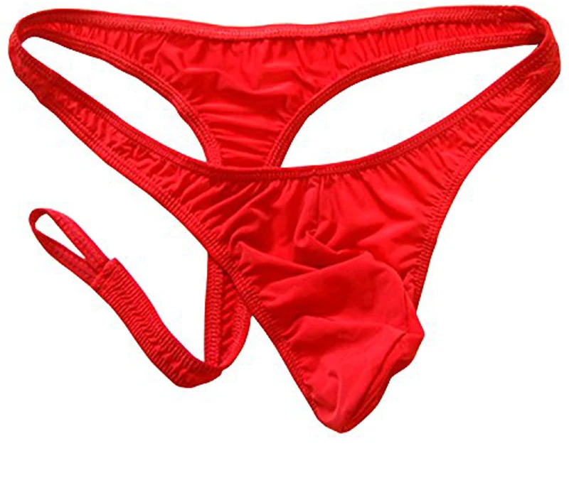 Męskie satynowe stringi z odpinaną kieszonką - czerwone