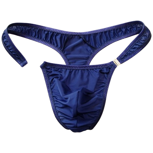 Męskie satynowe stringi z odpinanym przodem - granatowe