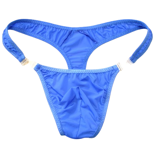 Męskie satynowe stringi z odpinanym przodem - niebieskie